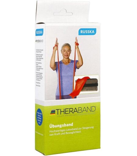 Anwendungsgebiet von Thera Band Travel 2,5 m mittel stark rotTheraband ist ein Trainingsband. Kraft in kg bei 100 % Dehnung: rot = mittel stark = 1,8 kgWirkstoffe / Inhaltsstoffe / ZutatenThera Band Travel 2,5 m mittel stark rot enthält: Lieferumfang: Thera-Band, Reise-Etui, Übungsbroschüre. Material: Übungsband: 100 % Naturlatex. Tasche: 100 % Nylon. Bandlänge: ca. 2,5 m.GegenanzeigenBei bekannter Überempfindlichkeit gegenüber einem der oben genannten Inhaltsstoffe sollte das Produkt nicht verwendet werden. DosierungAnwendungsempfehlung von Thera Band Travel 2,5 m mittel stark rot: Ausführliche Anwendungshinweise erhalten Sie in der Übungsanleitung. Reinigung: Mit Wasser reinigen, anschließend lufttrocknen und pudern. HinweisePersonen mit Latex-Allergie sollten dieses Produkt nicht verwenden. Thera Band Travel 2,5 m mittel stark rot können in Ihrer Versandapotheke www.juvalis.de erworben werden. ...