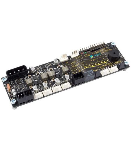 Aquacomputer aquaero 6 LT USB FanController Schon seit dem Verkaufsstart im Jahr 2004 steht der Name aquaero für die absolute Oberklasse unter den Lüftersteuerungen. Die neueste Generation das aquaero 6 legt die Messlatte noch einmal deutlich höher Die wichtigste Neuerung gegenüber dem aquaero 5 sind moderne Schaltreglerausgänge mit äußerst geringer Verlustleistung. Auch das aquaero 6 hat eine unübertroffene Erweiterbarkeit. Der Begriff der Lüftersteuerung kann dem riesigen Funktionsumfang de... ...