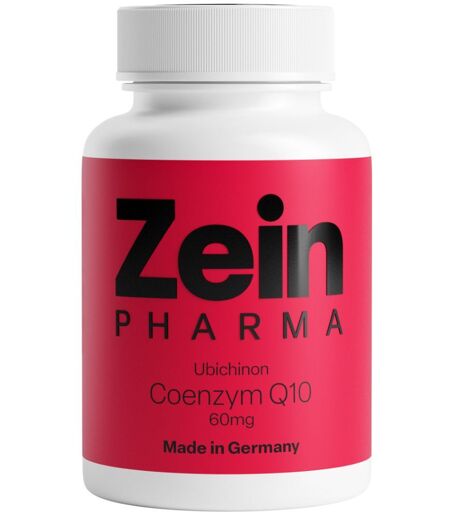 Nahrungsergänzungsmittel sind kein Ersatz für eine ausgewogene und abwechslungsreiche Ernährung und eine gesunde Lebensweise.Coenzym-Q10-Kapseln 60 mg von ZeinPharma® (90 Kapseln)Entdecken Sie die positiven Eigenschaften des Coenzyms Q10. Die Coenzym-Q10-Kapseln von ZeinPharma® enthalten dieses in einer 100 Prozent natürlichen Form, welche nahezu identisch mit dem Körpereigenen Coenzym ist. So können Sie sich die positiven Eigenschaften von Q10 dauerhaft zunutze machen.• Beinahe identisch zu körpereigenem Q10• Hohe Konzentration• Pflanzliche Basis• Hergestellt in DeutschlandCoenzym-Q10-Kapseln zur Unterstützung der Enzym-FunktionDas Coenzym Q10, welches in der Fachsprache auch als „Ubichinon“ bezeichnet wird, soll in beinahe jedem Gewebe des menschlichen Körpers vorkommen. Hier wird dem Coenzym die wichtige Aufgabe zugesprochen, andere Enzyme bei physiologischen Reaktionen und komplexen Prozessen zu unterstützen. Damit kann sich das Coenzym Q10 beispielsweise positiv auf die Energiegewinnung und das Immunsystem auswirken. Außerdem kann Coenzym Q10 Ihre Zellen auch im Kampf gegen freie Radikale unterstützen.Grundsätzlich ist der menschliche Organismus dazu fähig, selbst ausreichend Q10 zu produzieren. Allerdings soll sich diese Fähigkeit mit steigendem Lebensalter zunehmend verschlechtern. Daher gilt es als wichtig, spätestens ab dem 40. Lebensjahr eine ausreichende Q10-Zufuhr zu gewährleisten. Mit den Coenzym-Q10-Kapseln kaufen Sie ein natürliches und hochkonzentriertes Nahrungsergänzungsmittel, mit dem Sie dauerhaft eine ausreichende Q10-Versorgung gewährleisten können.Zutaten:Füllstoff: Mikrokristalline Cellulose, Kapselhülle: Hydroxypropylmethylcellulose (HPMC), Coenzym Q10 (14,3 %), Trennmittel: Magnesiumsalze der Speisefettsäuren (pflanzlich).Nährwerte:Durchschnittliche Nährwertepro 3 KapselCoenzym Q1090 mgVerzehrsempfehlung:Täglich unzerkaut 1-3 Kapseln vor einer Hauptmahlzeit mit Wasser (mind. 200 ml) verzehren. Die empfohlene tägliche Verzehrmenge darf nicht überschritten werdenHinweis:Die angegebene empfohlene Tagesmenge darf nicht überschritten werden.Aufbewahrung: Kühl (6-25 °C) und lichtgeschützt lagern. Außerhalb der Reichweite von kleinen Kindern aufbewahren.Nettofüllmenge: 90 Kapseln = 18 gHerstellerdaten:ZeinPharma Germany GmbHIndustriestr. 2964569 Nauheim ...