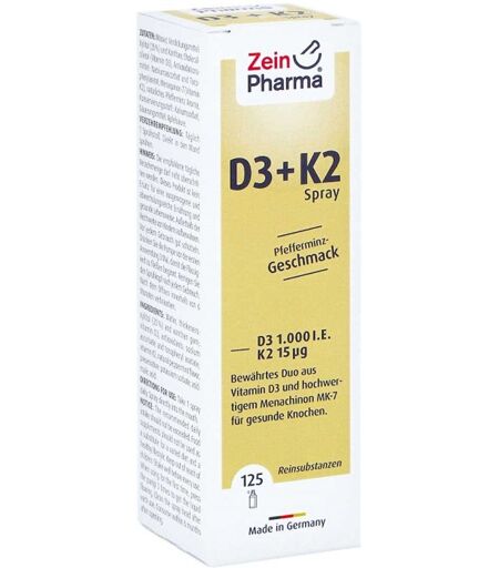 Anwendungsgebiet von Vitamin D3 + K2 mit patentiertem vitaMK7®D3 1.000I.E. K2 15µgVitamin D3 + K2 mit patentiertem vitaMK7®D3 1.000I.E. K2 15µg ist ein Nahrungsergänzungsmittel mit Vitamin D3 und Vitamin K2 in Mundsprayform und dem Zusatz an natürlichem Aroma aus