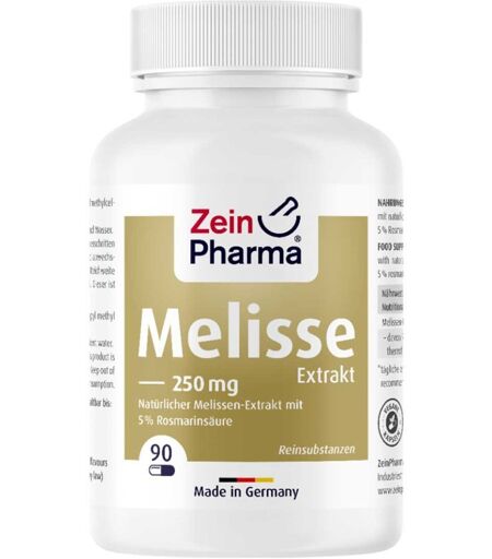 Anwendungsgebiet von Zitronenmelisse 250mg von ZEINpharmaZitronenmelisse 250mg von ZEINpharma ist ein Nahrungsergänzungsmittel mit natürlichem Extrakt aus Melisse (Melissa officinalis) mit 5 % Rosmarinsäure.Wirkstoffe / Inhaltsstoffe / ZutatenZutaten von Zitronenmelisse 250mg von ZEINpharma: Melissen-Extrakt (5 % Rosmarinsäure), Hydroxypropylmethylcellulose (Kapsel). Nährwertangaben pro 1 Kapsel* Melissen-Extrakt 250mg - davon Rosmarinsäure 12,5mgDosierungVerzehrempfehlung: Täglich unzerkaut 1 Kapsel mit ausreichend Wasser.HinweiseDie empfohlene tägliche Verzehrmenge darf nicht überschritten werden. Dieses Produkt ist kein Ersatz für eine ausgewogene und abwechslungsreiche Ernährung und gesunde Lebensweise. Außerhalb der Reichweite von Kindern aufbewahren. Enthält einen Trockenbeutel. Dieser ist nicht zum Verzehr geeignet. Zitronenmelisse 250mg von ZEINpharma können in Ihrer Versandapotheke www.juvalis.de erworben werden. ...
