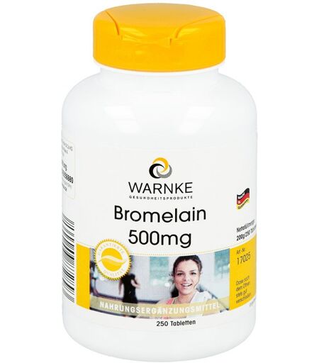 HinweiseNahrungsergänzungsmittel sind kein Ersatz für eine ausgewogene und abwechslungsreiche Ernährung. Bromelain 500 mg Tabletten sollten außerhalb der Reichweite von Kindern aufbewahrt werden. Die täglich empfohlene Verzehrmenge sollte nicht überschritten werden. Bromelain 500 mg Tabletten können in Ihrer Versandapotheke www.juvalis.de erworben werden. ...