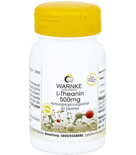 Anwendungsgebiet von L-Theanin 500 mg TablettenL-Theanin 500 mg Tabletten sind ein Nahrungsergänzungsmittel mit L-Theanin 500mg.Wirkstoffe / Inhaltsstoffe / ZutatenZutaten von L-Theanin 500 mg Tabletten:Zutaten: Füllstoff mikrokristalline Cellulose, L-Theanin, L- Leucin, Trennmittel Calciumsalze der Orthophosphorsäure, Trennmittel Baumwollsamenöl Inhalt pro Tablette L-Theanin 500mg L-Leucin 30mgGegenanzeigenBei bekannter Überempfindlichkeit gegenüber einem der oben genannten Inhaltsstoffe sollte das Produkt nicht verwendet werden. DosierungVerzehrempfehlung der L-Theanin 500 mg Tabletten: Erwachsene nehmen täglich 1 Tablette zu einer Mahlzeit mit viel Wasser ein.HinweiseNahrungsergänzungsmittel sind kein Ersatz für eine ausgewogene und abwechslungsreiche Ernährung. L-Theanin 500 mg Tabletten sollten außerhalb der Reichweite von Kindern aufbewahrt werden. Die täglich empfohlene Verzehrmenge sollte nicht überschritten werden. Nicht geeignet für schwangere und stillende Frauen. L-Theanin 500 mg Tabletten können in Ihrer Versandapotheke www.juvalis.de erworben werden. ...