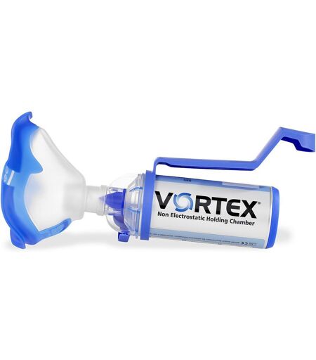 Die Inhalierhilfe mit Aluminiumkammer - für eine Therapie die ankommt. Die wesentlichen Vorteile der VORTEX: Antistatische Metallkammer Fördert eine zuverlässige Dosierung Universeller Adapter Geeignet für alle gängigen Dosieraerosole Einfache Handhabung durch die Einhand-Bedienhilfe Erleichtert das Halten und gleichzeitige Auslösen des Dosieraerosols "Drücken und gleichzeitig Einatmen", dies könnte die verkürzte Gebrauchsanweisung für ein Medikamentenspray sein. Nur ganz so einfach ist es für viele Patienten, insbesondere für Kinder und ältere Erwachsene, nicht. Diese haben oft Schwierigkeiten mit dem Auslösen des Sprays und der gleichzeitigen Einatmung. Oft geht dies mit einer erhöhten Ablagerung an Medikament im Mund-Rachen-Raum einher. Die antistatische Inhalierhilfe VORTEX hilft diese Nachteile von Medikamentensprays zu überwinden. Der Patient hat nach dem Auslösen des Sprühstoßes Zeit, um das Medikament aus der VORTEX abzuatmen. Die Koordination von "Drücken und Einatmen" wird somit deutlich erleichtert und die Therapie durch eine zuverlässige Dosierung sicherer. Mit der Einhand-Bedienhilfe wird die Inhalation mit der VORTEX jetzt noch einfacher – insbesondere bei Patienten, die aufgrund ihres Alters oder ihres Allgemeinbefindens eingeschränkte Koordinationsfähigkeiten aufweisen. Die Einhand-Bedienhilfe erleichtert das Halten und gleichzeitige Auslösen des Dosieraerosols. Durch das einzigartige Zyklon-Wirbel-Prinzip wird beim Einatmen des Patienten die Medikamentenwolke in einen Wirbel versetzt und unterstützt somit den Transport der kleinen Aerosoltröpfche Mit Erwachsenenmaske ...