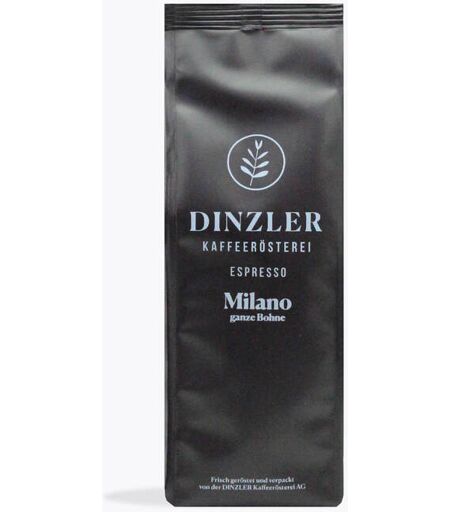 g im Siebträger, Espressokocher oder Vollautomaten. Wahlweise werden die Bohnen gemahlen oder als ganze Bohnen im 1-kg- oder 250-g-Beutel verpackt. Die Rösterei Dinzler legt viel Wert auf den Umweltschutz und eine nachhaltige Produktion. Daher verzichten sie bei den Kaffeeverpackungen auf Aluminium. ...