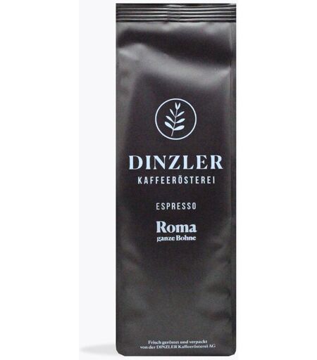 ebträger und Vollautomaten, ist der Roma am besten als Espresso oder kräftigem Cappuccino und Latte Macchiato zu genießen. Das Haus Dinzler legt besonderen Wert auf Nachhaltigkeit und Umweltschutz und verzichtet daher komplett auf Aluminium bei der Herstellung der Kaffeeverpackungen. ...