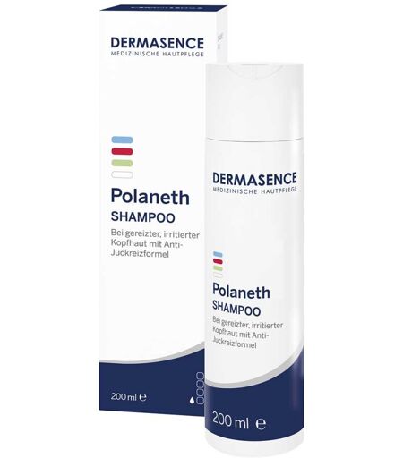 Anwendungsgebiet von Dermasence Polaneth Shampoo Beruhigendes Shampoo für sensible Kopfhaut – Pflege & Anti-Juckreiz-FormelSpeziell für sensible Kopfhaut entwickelt, wirkt das beruhigende Dermasence Polaneth Shampoo mit Panthenol gezielt gegen Kopfhautirritationen. Dank Glycerin und Urea wird die Kopfhaut intensiv gepflegt und der Feuchtigkeitsgehalt bewahrt.Die Anti-Juckreiz-Formel mit Polidocanol und Menthol lindert spürbar Juckreiz, kühlt angenehm und reduziert das Schmerzempfinden. Bei regelmäßiger Anwendung sorgt das Shampoo für eine langfristige Beruhigung der empfindlichen Kopfhaut – für ein entspanntes, frisches Gefühl!Wirkstoffe / Inhaltsstoffe / ZutatenDermasence Polaneth Shampoo enthält:Aqua, Sodium Laureth Sulfate, Laureth-9, Cocamidopropyl Betaine, Sodium Chloride, Maris Sal, Panthenol, Urea, Benzyl Alcohol, Magnesium Chloride, Sodium Benzoate, Glycerin, Hydroxypropyl Guar Hydroxypropyltrimonium Chloride, Mentha Arvensis Leaf Oil, Potassium Sorbate, Limonene, Lactic Acid, Citric Acid, Menthol.GegenanzeigenBei bekannter Überempfindlichkeit gegenüber einem der oben genannten Inhaltsstoffe sollte das Produkt nicht angewendet werden.DosierungAnwendungsempfehlung von Dermasence Polaneth Shampoo:Die gewünschte Menge auf das nasse Haar verteilen und gleichmäßig einmassieren. Das Shampoo bis zu drei Minuten lang einwirken lassen und anschließend mit Wasser ausspülen. Bei Bedarf kann das Shampoo täglich angewendet werden.PatientenhinweiseFür Neurodermitiker*innen und Psoriatiker*innen empfohlen Dermasence Polaneth Shampoo können in Ihrer Versandapotheke www.juvalis.de erworben werden. ...
