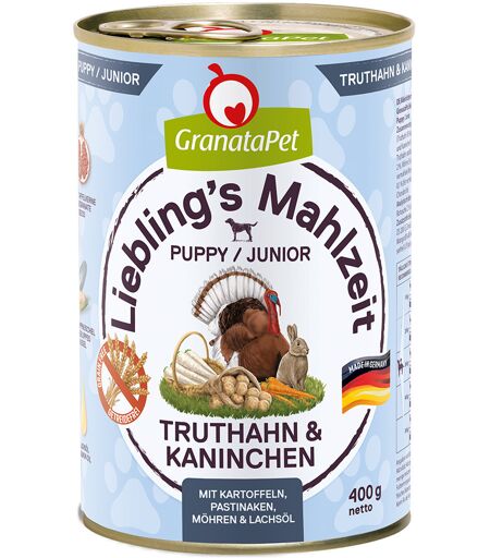 6x400g Granatapet Liebling's Mahlzeit Junior Truthahn & Kaninchen Hundefutter nass
