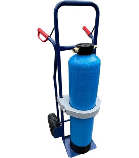 Flaschenwagen für Mischbettharzflasche 25L. Speziell für unsere Mischbettharzflaschen 25L ist dieser Flaschenwagen aus stabilen Stahlrohren konzipiert. Eigenschaften: stabile Stahlrohrkonstruktion Halterund komplett mit Schiebemechanismus Luftreifen mit Autoreifenventilen, 25cm Durch ...