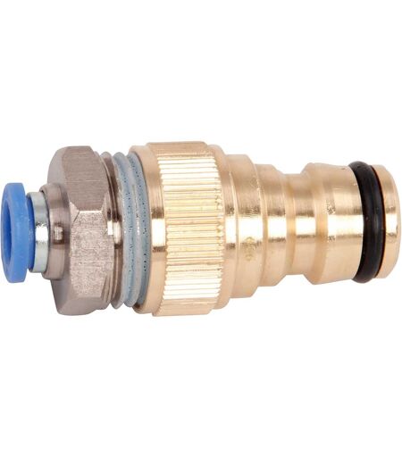 Dieser Adapter hat eine Steckverbindung in die Sie Ihren 6mm Schlauch einfach einstecken. Arretiert von selbst. Dann den Adapter mit Ihrem Wasserschlauch verbinden. Um den Schlauch zu entfernen, einfach den blauen Ring runterdrücken und dann den Schlauch rausziehen. ...