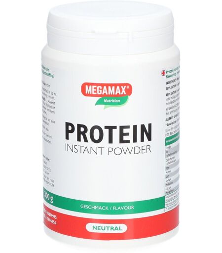 Nahrungsergänzungsmittel sind kein Ersatz für eine abwechslungsreiche und ausgewogene Ernährung und eine gesunde Lebensweise.MEGAMAX® Protein Instant Powder Hochwertige Eiweißquelle: Das Produkt enthält hochwertiges Molkeneiweißkonzentrat, das eine optimale Quelle für essentielle Aminosäuren darstellt. Vielseitige Anwendung: Das Instantpulver eignet sich ideal zum Verzehr in kalten oder warmen Flüssigkeiten und Speisen, also von kalten Protein Shakes bis hin zu warmen Mahlzeiten. Diätmanagement: Es ist besonders nützlich im Diätmanagement bei erhöhtem Eiweißbedarf, da es eine effektive Möglichkeit bietet, den Bedarf an Eiweiß zu decken. Mangelerscheinungen vorbeugen: Durch die Anreicherung von Nahrungsmitteln mit wertvollem Eiweiß können Mangelerscheinungen vermieden werden. Erhaltung von Muskelmasse: Das Proteinpulver unterstützt den Muskelerhalt und fördert den Muskelaufbau, sowohl bei der Regeneration nach dem Sport als auch bei der optimierten Seniorenernährung. Gut verträglich: Das Pulver ist laktosearm und glutenfrei sowie nahezu fett- und zuckerfrei. Es ist frei von Aromen, Ballaststoffen und Süßungsmitteln. Einfache Dosierung: Das geschmacksneutrale Protein-Instantpulver ist gut löslich und kann mithilfe des beiliegenden Messlöffels leicht dosiert werden.Zutaten: Molkenproteinisolat, Emulgator (Sojalecithin)Nährwerte: Durchschnittliche Nährwerte: pro 100 g: pro 6 g: Energie 1555 kJ / 366 kcal 471 kJ / 111 kcal Fett - davon gesättigte Fettsäuren 0,6 g < 0,5 g < 0,5 g < 0,1 g Kohlenhydrate - davon Zucker 2,3 g 2,3 g < 0,5 g < 0,5 g Ballaststoffe 0 g 0 g Eiweiß 92 g 5,5 g Salz 0,2 g 0,012 g Natrium 200 mg 12 mg Kalium 400 mg 24 mg Calcium 450 mg 27 mg Phosphor 220 mg 13,2 mg Verzehrempfehlung: Geben Sie einen Messlöffel in 250 ml Wasser und trinken Sie dieses.Hinweis:Die angegebene empfohlene Tagesmenge darf nicht überschritten werden.Aufbewahrung: Kühl (6-25 °C) und lichtgeschützt lagern. Außerhalb der Reichweite von Kindern aufbewahren.Nettofüllmenge: ℮ 300 g Herstellerdaten: Megamax b.v. Klarenanstelerweg 5 6468 EP Kerkrade Niederlande ...