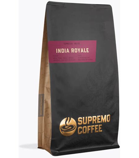sehr geringen Säure-Anteil. Supremo wurde 2008 vom Fachmagazin „Crema“ zur Rösterei des Jahres und vom Magazin „Der Feinschmecker“ als eine der besten Röstereien 2018 ausgezeichnet. Probieren Sie jetzt den Testsieger Supremo India Royale. Supremo Kaffees sind jetzt auch frisch gemahlen erhältlich! ...
