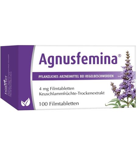 Anwendungsgebiet von Agnusfemina®Agnusfemina® ist ein pflanzliches Arzneimittel und lindert auf natürliche Weise Regelschmerzen und reduziert Beschwerden des Prämenstruellen Syndroms (PMS). Agnusfemina® enthält den hochwertigen Trockenextrakt der Mönchspfefferfrüchte, welcher direkt an der Ursache der Menstruationsbeschwerden – dem hormonellen Ungleichgewicht – ansetzt.Wirkungsweise von Agnusfemina® Mönchspfeffer – natürliche Hilfe bei PMS-Beschwerden und Regelschmerzen Besonders geeignet für die Behandlung des Prämenstruellen Syndroms und zur Linderung von Regelbeschwerden ist die Heilpflanze Vitex-agnus-castus, auch Mönchspfeffer oder Keuschlamm genannt. Der Extrakt aus den dunklen Früchten wirkt regulierend auf den weiblichen Zyklus und kann auf natürliche Weise den Ausgleich des weiblichen Hormonhaushalts unterstützen. Die wirksamen Bestandteile aus den Früchten des Mönchspfeffers regulieren die Ausschüttung des Hormons Prolaktin. Der Prolaktinspiegel sinkt und das hormonelle Gleichgewicht wird wiederhergestellt. Der drei bis sechs Meter hohe Strauch mit lila, blauen oder rosa Blüten ist im Mittelmeerraum und in Teilen Asiens beheimatet. Wirkstoffe / Inhaltsstoffe / Zutaten4 mg Mönchspfefferfrucht Trockenextrakt, (7-13:1), Auszugsmittel: Ethanol 60% (m/m)Carboxymethylstärke, Natriumsalz Typ A Hilfstoff (+)Cellulose, mikrokristallin Hilfstoff (+)Eisen (III) oxid Hilfstoff (+)Glucose Sirup Hilfstoff (+)Hypromellose Hilfstoff (+)Lactose 1-Wasser Hilfstoff (+)Macrogol 4000 Hilfstoff (+)Magnesium stearat Hilfstoff (+)Maisstärke Hilfstoff (+)Silicium dioxid, hochdispers Hilfstoff (+)Titan dioxid Hilfstoff (+)GegenanzeigenDas Präparat darf nicht eingenommen werden,wenn Sie überempfindlich (allergisch) gegen Keuschlammfrüchte-Extrakte sind.bei Hypophysentumoren (Geschwülste der Hirnanhangsdrüse)Mammakarzinom (Brustkrebs) DosierungAnwendungsempfehlung von Agnusfemina®: Nehmen Sie jeden Tag mögl ...