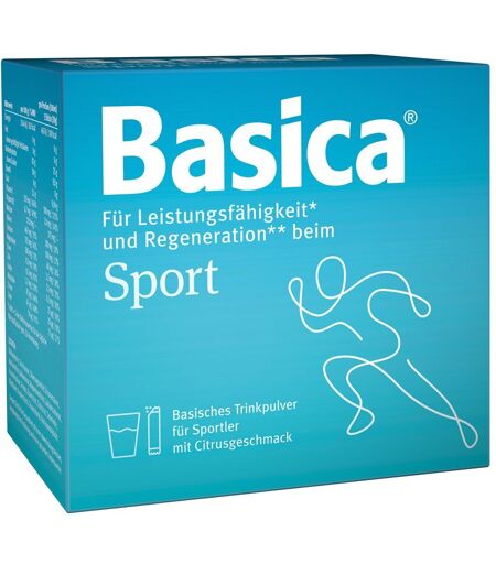 Nahrungsergänzungsmittel sind kein Ersatz für eine ausgewogene und abwechslungsreiche Ernährung und eine gesunde Lebensweise.Basica® SportBasica® Sport - Basisches Trinkpulver für Sportler mit Citrusgeschmack - für Leistungsfähigkeit* und Regeneration** beim SportSchnell lösliches Trinkpulver für Sportler zur Herstellung einer hypotonen Kohlenhydrat-Elektrolyt-Lösung mit Mineralstoffen und Vitaminen. Mit frischem Citrusgeschmack. Auf der Basis aktueller ernährungswissenschaftlicher Erkenntnisse liefert die ausbalancierte und auf die ganzheitlichen Bedürfnisse von Sportlern abgestimmte Rezeptur vor, während und nach dem Sport wichtige leistungsrelevante Nährstoffe. *Kohlenhydrat-Elektrolyt-Lösungen tragen zur Aufrechterhaltung der Ausdauerleistung bei längerem Ausdauertraining bei und verbessern währenddessen die Aufnahme von Flüssigkeit.BASISCHE MINERALSTOFFE (ELEKTROLYTE):Magnesium und Kalium tragen zur normalen Muskelfunktion bei. Calcium unterstützt den Energiestoffwechsel, Zink den Säure-Basen-Haushalt.VITAMINE UND SPURENELEMENTE:Vitamin C und Selen leisten einen Beitrag zu einer gesunden Funktion des Immunsystems, Vitamin B2 und Kupfer unterstützen den Energiestoffwechsel.**KOHLENHYDRATE:Sie tragen zur Regeneration der Muskelfunktion bei, wenn nach sehr intensiver körperlicher Betätigung die Glykogenvorräte in der Muskulatur erschöpft sind. Insgesamt sind 4 g Kohlenhydrate pro kg Körpergewicht innerhalb von 4–6 Stunden nach dem Training zuzuführen.Zutaten:Maltodextrin, Saccharose, Säuerungsmittel Zitronensäure, Natriumcitrat, Kaliumcitrat, Magnesiumcitrat, Calciumcarbonat, Ascorbinsäure, Aroma, Eisencitrat, Zinkcitrat, Selenhefe, Riboflavin, Kupfercitrat, Chromchlorid, NatriummolybdatNährwerte: Durchschnittliche Nährwerte: pro 100 g pro 1 Portion 30 g in 500 ml Energie 1544 kJ / 363 kcal 463 kJ / 109 kcal Fett - davon gesättigte Fettsäuren 0 g 0 g 0 g 0 g Kohlenhydrate - davon Zucker 82 g 30 g 25 g 9 g Eiweiß 0 g 0 g Salz 3,1 g 0,94 g Vitamin C 333 mg 100 mg Vitamin B2 6,7 mg 2 mg Natrium 1250 mg 375 mg Kalium 667 mg 200 mg Calcium 333 mg 100 mg Magnesium 200 mg 60 mg Eisen 8,3 mg 2,5 mg Zink 8,3 mg 2,5 mg Kupfer 1,7 mg 0,5 mg Molybdän 83 µg 25 µg Chrom 67 µg 20 µg Selen 50 µg 15 µg Verzehrempfehlung:Pro Portion 30 g (5 Messlöffel bzw. 5 Sticks) in 500 ml Wasser auflösen. 2 bis maximal 4 Portionen pro Tag. Je nach sportlicher Intensität und Dauer vor, während oder nach dem Sport trinken.Hinweis:Die angegebene empfohlene Tagesmenge darf nicht überschritten werden.Aufbewahrung:Kühl (6-25 °C) und lichtgeschützt lagern. Außerhalb der Reichweite von Kindern aufbewahren.Nettofüllmenge: 50 SticksHerstellerdaten: Protina Pharm. GmbH 85737 Ismaning ...
