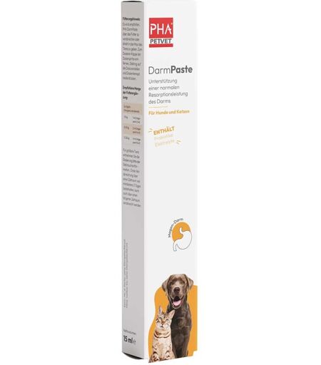 Anwendungsgebiet von PHA DarmPaste für Hunde & KatzenPHA DarmPaste für Hunde & Katzen ist ein Ergänzungsfuttermittel zur Unterstützung einer normalen Resorptionsleistung des Darms. Mit einem hohen Gehalt an Elektrolyten und dem zugesetzten Probiotikum unterstützt die Paste die Verdauung Ihres Tieres auf natürliche Weise.