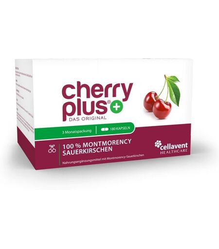 Nahrungsergänzungsmittel sind kein Ersatz für eine ausgewogene und abwechslungsreiche Ernährung und eine gesunde Lebensweise.CHERRY PLUS MONTMORENCY-SAUERKIRSCH-KAPSELN Die Sauerkirsche (prunus cerasus) und insbesondere die Sorte Montmorency, steht bereits seit längerem im Fokus der Wissenschaft. Die Montmorency-Sauerkirsche ist ein Kraftspender für die Gesundheit. Kaum eine andere Frucht weist ein so umfangreiches Pflanzenprofil auf. Neben zahlreichen Flavonoiden und Polyphenolen zeichnet sich die Montmorency-Sauerkirsche durch einen besonders hohen Anteil an Antioxidantien, Anthozyanen (rot-violette Farbstoffe) und dem natürlichen Melatonin aus. Cherry PLUS bietet hochkonzentrierte Montmorency-Sauerkirsch-Produkte für einen vielseitigen therapeutischen Einsatz. In unseren Cherry PLUS Sauerkirsch-Kapseln haben wir ausschließlich ganze Montmorency-Sauerkirschen verwendet und hoch konzentriert. In einem schonenden Gefriertrocknungsverfahren werden bis zu 50 kg frische, vollreife Montmorency-Sauerkirschen zu 1kg Pulver verarbeitet, dem Rohstoff von Cherry PLUS – Das Original. 100% NATÜRLICH – OHNE ZUSÄTZE Um Ihnen ein möglichst naturbelassenes Produkt anbieten zu können, verzichten wir auf jegliche Art von unnötigen und synthetischen Zusatzstoffen. Unsere Sauerkirsch-Kapseln sind frei von Gentechnik, Konservierungs- und Farbstoffen, Gelatine, zugesetztem Zucker, Gluten, Lactose sowie gehärteten oder tierischen Fetten. Die Kapseln selbst werden aus rein pflanzlicher Cellulose hergestellt, sodass unsere Sauerkirsch-Kapseln auch den Ansprüchen einer veganen Ernährung gerecht werden. Zutaten: Montmorency-Sauerkirschpulver, Überzugsmittel (Kapselhülle): Hydroxypropylmethylcellulose (pflanzlich)Nährwerte: Zusammensetzung pro Kapsel pro Tagesmenge (2 Kapseln) Montmorency-Sauerkirsch-Pulver 600 mg 1200 mg Verzehrempfehlung: Täglich je 2 Kapseln mit stillem Wasser einnehmen. Bei Bedarf das Pulver in Wasser einrühren. Hinweis: Die angegebene empfohlene Verzehrmenge darf nicht überschritten werden. Nahrungsergänzungsmittel sind kein Ersatz für eine ausgewogene und abwechslungsreiche Ernährung und eine gesunde Lebensweise. Produkt enthält Kirschen. Lactose- und glutenfrei.Aufbewahrung: Kühl, trocken, lichtgeschützt sowie außerhalb der Reichweite von kleinen Kindern lagern.Nettofüllmenge: 3 x 60 Kapseln = 129,24 g Herstellerdaten: Cellavent Healthcare GmbH Am Trippelsberg 43 40589 Düsseldorf ...