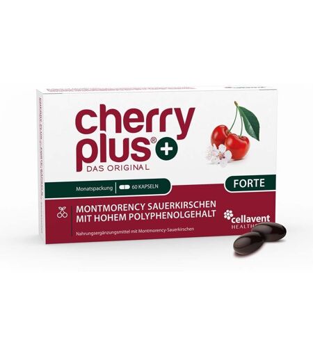 Nahrungsergänzungsmittel sind kein Ersatz für eine ausgewogene und abwechslungsreiche Ernährung und eine gesunde Lebensweise. Cherry Plus Forte Die Montmorency-Sauerkirsche ist bekannt für ihren einzigartigen Vitalstoffgehalt. Mit Cherry PLUS Forte wird das gesundheitliche Potenzial dieser besonderen Frucht durch die Kombination von Montmorency-Sauerkirschenkonzentrat und einem natürlichen Olivenöl-Zink-Bisglycinat ergänzt. Der hohe Polyphenolgehalt (43 mg pro Tagesdosis) unterstützt den Schutz der Zellen vor oxidativem Stress und trägt zu einer normalen Funktion des Immunsystems bei. Cherry PLUS Forte ist ein Nahrungsergänzungsmittel in Kapseln mit Montmorency-Sauerkirschkonzentrat und Zink. Es kombiniert optimal die Vorteile dieser Vitalstoffe und ist speziell für den täglichen Bedarf entwickelt. Zutaten: Sauerkirschsaft-Konzentrat, Olivenöl nativ extra, Gelatine (Rind), Sauerkirsch-Extrakt, Glycerol, Karion (Maisstärke), gereinigtes Wasser, Kieselsäure, Zink-Bisglycinat, Lecithin. Nährwerte: Nährstoff Pro Tagesmenge (2 Kapseln) % des Tagesbedarfs Montmorency-Sauerkirschkonzentrat 800 mg ** Sauerkirsch-Extrakt 304 mg ** Polyphenole 43 mg ** Zink 6,4 mg 64% ** Keine Nährstoffbezugswerte gemäß LMIV festgelegt. Verzehrempfehlung: 2 Kapseln täglich mit etwas Wasser einnehmen. Für optimale Ergebnisse empfehlen wir eine Einnahmedauer von mindestens 12 Wochen. Hinweise: Nahrungsergänzungsmittel sind kein Ersatz für eine abwechslungsreiche und ausgewogene Ernährung sowie eine gesunde Lebensweise. Die angegebene empfohlene tägliche Verzehrmenge darf nicht überschritten werden. Nicht für Kinder geeignet. Aufbewahrung: Kühl, trocken und lichtgeschützt sowie außerhalb der Reichweite von kleinen Kindern lagern. Nettofüllmenge: 60 Kapseln = 75 g Hersteller: Cellavent Healthcare GmbH Am Trippelsberg 43 40589 Düsseldorf Deutschland Tel.: +49 (0)211 78 17 68 90 E-Mail: info@cellavent.de Web: www.cellavent.de ...