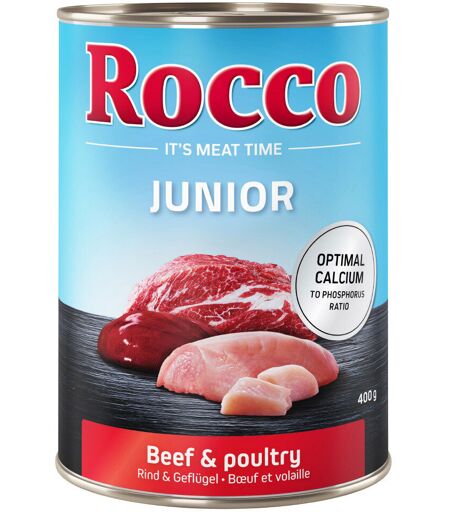 24x400 g Junior,Geflügel mit Rind Rocco Hundefutter nass