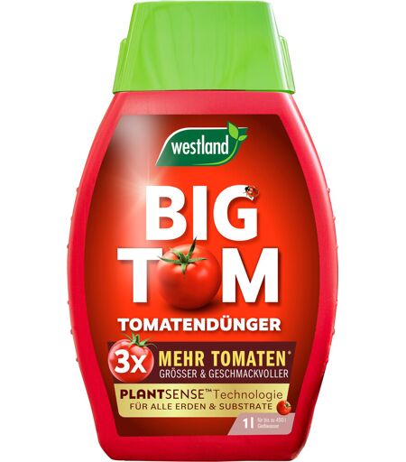 Westland Big Tom Tomatendünger 1 l Produktnummer: 0688301611 Beste Nährstoffe für große, geschmackvolle Tomaten Der Westland Big Tom Tomatendünger sorgt für eine optimale Nährstoffversorgung von Tomatenpflanzen. Wie bereits beim Westland Boost Universal Flüssigdünger bietet die eigens entwickelte Plantsense --Technologie ein perfektes Zusammenwirken aller relevanten Komponenten eines sehr gut abgestimmten Düngers und führt somit zu besten Ergebnissen in Form von großen, geschmackvollen und saftigen Tomaten. Bis zu 3 x mehr Tomaten Ideale Nährstoffkombination für kräftiges, gesundes Wachstum Hoher Kaliumgehalt fördert pflanzeneigene Abwehr, Blüte und Fruchtbildung Sofort und langfristig verfügbare Stickstoffe Netzmittel für bessere, effiziente Wasserverteilung in der Erde mit minimiertem Oberflächenabfluss und Aussickern von Wasser Kontinuierlichere Versorgung reduziert Anfälligkeit für Blütenendfäule und Aufplatzen der Tomaten Optimal geeignet für alle, insbesondere torffreie Erden Auch für andere Nachtschattengewächse und Gemüsepflanzen geeignet Herstellerinformationen: Westland Deutschland GmbH Am Bollscheid 50 56424 Mogendorf, Deutschland eMail: kontakt@westland.com Herstellernr. 737443 ...