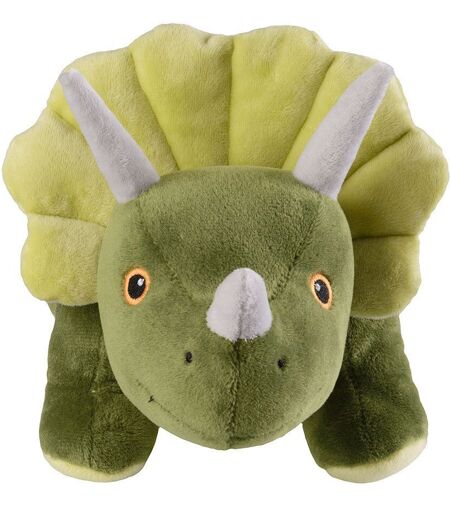Warmies® Triceratops Ein verschmuster Kuschel-Dino ist der handzahme Triceratops. Trotz seiner Stacheln ist dieser Dino ganz warm, weich und flauschig. Der gemütliche Pflanzenfresser aus der Urzeit begeistert mit seinem eindrucksvollen Panzer und seinen freundlichen Augen alle Dino-Fans. Er ist ca. 35 cm lang, ca. 17 cm hoch und wiegt etwa 780 g. Mit seiner Wärme schützt er alle seine Freunde vor der nächsten Eiszeit. Mit nicht herausnehmbarer Hirsekorn-Lavendel-Füllung. Für eine gleichmäßige Wärmeverteilung Produkt vor Gebrauch sorgfältig durchkneten und die Temperatur an einer empfindlichen Körperstelle (z.B. Armbeuge) überprüfen. Gebrauchshinweise unbedingt beachten! ACHTUNG: DIESES PRODUKT KANN VERBRENNUNGEN VERURSACHEN. LÄNGEREN DIREKTEN HAUTKONTAKT VERMEIDEN! VORSICHT BEIM HERAUSNEHMEN AUS DER MIKROWELLE ODER DEM ELEKTRO-BACKOFEN, PRODUKT KÖNNTE HEISS SEIN DEN INHALT NICHT VERZEHREN DAS PRODUKT NICHT ÜBERHITZEN NUR FÜR DIE ERWÄRMUNG IN DER MIKROWELLE ODER IM ELEKTRO-BACKOFEN GEEIGNET NUR UNTER STRENGER AUFSICHT ERWACHSENER VERWENDEN BITTE DIESE GEBRAUCHSHINWEISE GUT DURCHLESEN! Erwärmung in der Mikrowelle oder im Elektro-Backofen: Papier-Etikett vom Produkt entfernen und für den späteren Gebrauch aufbewahren. Das saubere und trockene Produkt für maximal 90 Sekunden bei maximal 800 Watt in der Mikrowelle erwärmen. Sicherstellen, dass sich der Drehteller frei drehen kann, sauber bzw. frei von Fettrückständen ist und sich die Mikrowelle nach maximal 90 Sekunden automatisch ausschaltet. Die Grillfunktion ausschalten! Für die Erwärmung in einem vorgeheizten Elektro-Backofen (Achtung: nur bei Umluft!) legen Sie das Produkt für maximal 10 Minuten bei 100 °C auf einem hitzebeständigen Teller auf die mittlere Ofenschiene. Eine vorhandene Grillfunktion ist stets auszuschalten! Das Produkt vor jeder Erwärmung stets auf Raumtemperatur abkühlen lassen. Die Wärmeentwicklung zwischendurch kontrollieren. Bei den ersten Erwärmungen des Produkts kann es an der Produkt-Oberfläche zu einer geringfügigen Feuchtigkeitsbildung kommen, die sich jedoch nach mehrmaliger Nutzung einstellt. Produkt niemals überhitzen! Erwärmung des Produkts grundsätzlich nur unter Aufsicht Erwachsener vornehmen. Vorsicht beim Herausnehmen des Produkts aus der Mikrowelle oder dem Ofen. Beachten Sie die angegebene Erwärmungszeit und Wattzahl. Achtung: Direkter Hautkontakt kann zu Verbrennungen führen. Stellen Sie durch sorgfältiges Durchkneten immer sicher – besonders bevor das Produkt einem Kind gegeben wird – dass das Produkt nicht zu heiß ist, und dass die Wärme gleichmäßig verteilt ist. Achtung: Die Oberflächentemperatur kann auch nach der eigentlichen Erwärmung nach der Entnahme aus der Mikrowelle noch weiter steigen. Vor Gebrauch die Temperatur des Produkts (max. 41 °C) an einer empfindlichen Körperstelle (z. B. in der Armbeuge) überprüfen. Achtung: Vor erneuter Erwärmung muss das Produkt auf Raumtemperatur abgekühlt und die Oberfläche sauber und trocken sein. Es kann bis zu... ...