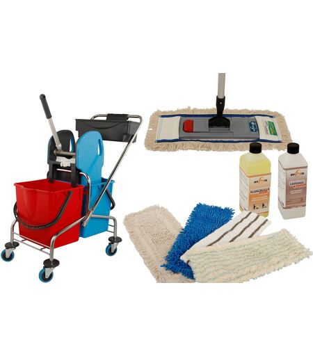 Axis24 GmbH Axis Line Wischmop Komplettset mit Doppelfahrwagen Reinigungswagen 17 Liter Chrom und Ersatzmöppe und 2 x Profi Reinigungsmittel 40cm breite