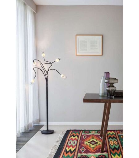 Wird die serien lighting Poppy Stehleuchte mit 5 Armen eingeschaltet, öffnen sich Ihre Schirme ähnlich einer Blüte. Dafür verantwortlich sind die feinen Blätter aus Bi-Metall, die sich durch Erwärmung des Leuchtmittels in eine vorgegebene Richtung ausdehnen. Nach ca. 2 Minuten entfaltet sich die ganze Pracht während sich die Schirme bei ausgeschaltetem Licht wieder in die ursprüngliche Position zurückziehen. Die Lampe erinnert auch in ihrer äußeren Erscheinung an eine Blume: Die serien lighting Poppy Stehleuchte hat - daher der Name - die Form einer Mohnblüte. Ihr Schirm besteht aus mundgeblasenem Glas, das in den Farben rot, keramik und schwarzviolett zu haben ist. Durchleuchtet erhält der kelchartige Schirm eine feine Transparenz.Die Arme der serien lighting Poppy Stehleuchte bestehen aus einem textilummantelten Flexschlauch (wahlweise in beige oder schwarz), der sich in die gewünschte... ...