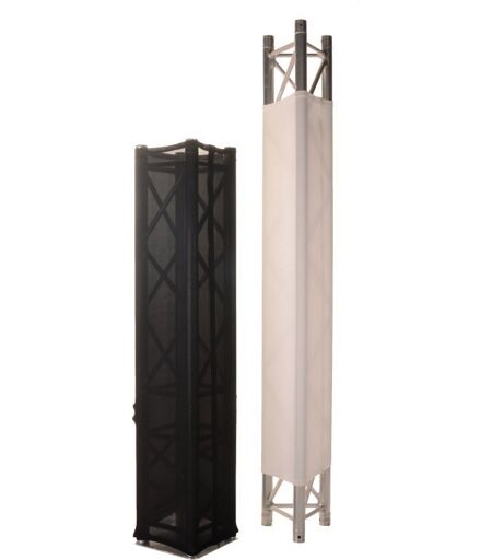 Traversencover Reißverschluss: Verkleiden Sie Ihre Traversenkonstruktionen mit unseren flexiblen Trusscovern. Aus den klobigen Alukonstruktionen werden dekorative aber dennoch funktionelle Gestaltungselemente. Durch den Einsatz von LED-Scheinwerfern können Sie die Traverse zusätzlich “glühen” lassen. Montieren Sie das Cover erst nach dem Aufbau, dank des durchgängigen Reißverschlusses.passt über alle gängigen 3 und 4 Punkt Traversen mit Schenkellängen bis 30cm, sehr schnell montiert, vielfach waschbar, permanent schwer entflammbar nach DIN 4102 B1, bügelfrei und trotzdem keine Falten, sehr strapazierfähig , mit durchgängigem Reißverschluss, kein „Aufrollen“ der Husse, da Kanten gesäumt, Länge: 300 Zentimeter, Materialzusammensetzung: schwarz 85% Polyester, 15% Elasthan ...