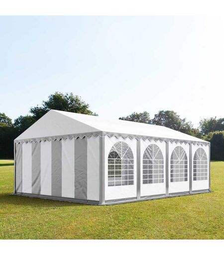TOOLPORT 5x8m Partyzelt, PVC-Plane, grau-weiß, mit Bodenrahmen - (5371)