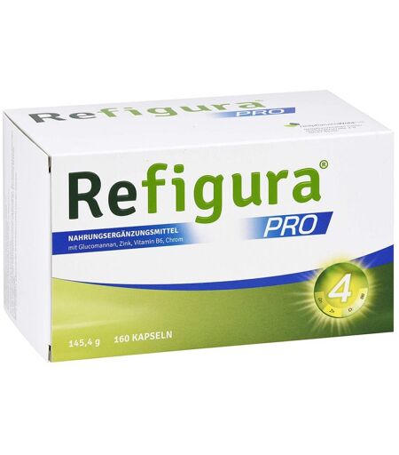 Anwendungsgebiet von Refigura Pro KapselnRefigura Pro Kapseln ist ein Nahrungsergänzungsmittel mit Glucomannan, Vitamin B6, Zink und Chrom. Es hilft mit seinem einzigartigen 4-in-1 PRO Komplex. Refigura Pro können Sie endlich gesund abnehmen¹. Refigura Pro Kapseln unterstützt den Erhalt eines gesunden Stoffwechsels², Blutzucker-³ und Cholesterin-Spiegels*. ¹ Glucomannan trägt im Rahmen einer kalorienarmen Ernährung zu Gewichtsverlust bei. ² Vitamin B6 trägt zu einem normalen Energiestoffwechsel bei. Zink trägt zu einem normalen Kohlenhydrat- und Fettsäure-Stoffwechsel bei. ³ Chrom trägt zur Aufrechterhaltung eines normalen Blutzuckerspiegels bei. * Glucomannan trägt zur Aufrechterhaltung eines normalen Cholesterinspiegels im Blut bei. Wirkungsweise von Refigura Pro KapselnGlucomannan trägt im Rahmen einer kalorienarmen Ernährung zu Gewichtsverlust und zur Aufrechterhaltung eines normalen Cholesterinspiegels im Blut bei. Vitamin B6 trägt zu einem normalen Energie-stoffwechsel bei. Zink trägt zu einem normalen Kohlenhydrat-Stoffwechsel und zu einem normalen Fettsäurestoffwechsel bei. Chrom trägt zur Aufrechterhaltung eines normalen Blutzuckerspiegels bei. Wirkstoffe / Inhaltsstoffe / ZutatenRefigura Pro Kapseln enthält: Konjak–Glucomannan (aus der Baumknolle des Amorphophallus konjac), Hydroxypropylmethylcellulose, Maisstärke, Wasser, Titandioxid (Farbstoff), Zinkgluconat, Pyridoxinhydrochlorid, Chrom-(III)-chlorid auf Calciumcarbonat Durchschnittliche Nährstoffe pro Tagesdosis (6 Kapseln): Konjak Glucomannan 4 g Zink 3 mg (30 %*) Vitamin B6 0,42 mg (30 %*) Chrom 12 µg (30%*) *NRV: Referenzmenge nach EU-Lebensmittelinformationsverordnung GegenanzeigenBei bekannter Überempfindlichkeit gegenüber einem der oben genannten Inhaltsstoffe sollte dieses Produkt nicht angewendet werden.DosierungVerzehrempfehlung von Refigura Pro Kaps ...