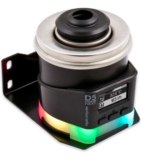 Mit der D5 NEXT präsentiert Aqua Computer eine auf der Laing D5 basierende Kühlmittelpumpe mit hervorragendem Funktionsumfang. Die abnehmbare Steuereinheit ist mit einem OLEDDisplay und einem leistungsfähigen PWMLüfterausgang ausgestattet. Ebenfalls integriert ist ein RGBpxEffektcontroller für 64 adressierbare LEDs. Die wichtigsten Funktionen im Überblick Laing D5 keramikgelagerter Kugelmotor für optimale Laufruhe und Langlebigkeit Abnehmbare Steuereinheit für leichten Zugang zu den elektrisc... ...