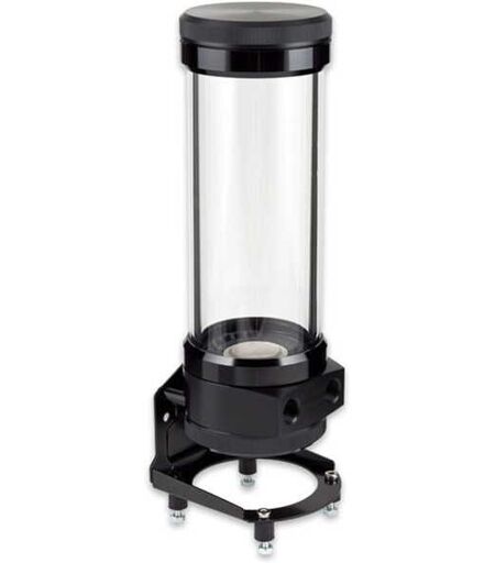 Die Ausgleichsbehälter der ULTITUBESerie sind mit einer Röhre aus Borosilikatglas ausgestattet das im Gegensatz zu dem häufig für RöhrenAusgleichsbehälter eingesetzten Plexiglas eine sehr hohe Härte und Kratzfestigkeit eine sehr geringe Wärmeausdehnung und eine hervorragende chemische und thermische Beständigkeit aufweist. Die Glasröhre hat einen Außendurchmesser von 65 mm und eine Wandstärke von 5 mm. Beide Enden der Glasröhre sind mit Metallringen aus schwarz eloxiertem Aluminium fest verbu... ...