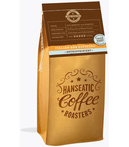 Hanseatic Coffee Roasters Italian Bar Espresso Decaf 250g