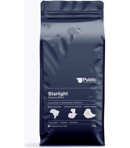 ger Schokolade, kombiniert mit einer sanften Zartbitter-Haselnussnote. Der Espresso wurde in Hamburg handgeröstet und es gibt ihn als ganze Bohne oder gemahlen für Siebträger und Herdkocher geeignet. Somit wird jeder Kaffee durch Ihre bevorzugte Zubereitungsart zu einem wahren Genuss. ...