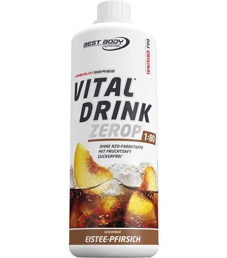 Nahrungsergänzungsmittel sind kein Ersatz für eine ausgewogene und abwechslungsreiche Ernährung und eine gesunde Lebensweise.Best Body Nutrition Vital Drink ZeropDer Vital Drink Zerop ist ein Getränkekonzentrat zur Zubereitung von kalorienarmen und zuckerfreien Erfrischungsgetränken. Ideal für Sportler, die ihren Flüssigkeitshaushalt auffüllen möchten, ohne Zucker zu sich zu nehmen. Das Produkt enthält wichtige Vitamine wie B1, B6 und Niacin, die den Energiestoffwechsel unterstützen. Es bietet einen fruchtigen Geschmack und eignet sich perfekt für Sprudelwasser.Nur 2,5 kcal pro PortionZuckerfrei und kalorienarmMit Vitamin B1, B6 und Niacin angereichertMischverhältnis 1:80 – ergibt 100 PortionenGeeignet für WassersprudlerZutaten: Wasser, Säuerungsmittel Citronensäure, Fruktose, Vitamin-Mix (Niacin, B6, B1), Aromen, Süßungsmittel: Natriumcyclamat, Acesulfam K, SaccharinNährwertangabenInhaltsstoffPro 100 ml*NRVEnergie8 kJ / 2 kcaln.a.Fett0 gn.a.davon gesättigte Fettsäuren0 gn.a.Kohlenhydrate0.6 gn.a.davon Zucker0.1 gn.a.Eiweiß0 gn.a.Salz0.01 gn.a.Allergene: Keine AngabenVerzehrempfehlung: 5 ml Konzentrat in 400 ml Wasser mischen, ideal für Wassersprudler.Hinweis: Die angegebene empfohlene Tagesmenge darf nicht überschritten werden.Aufbewahrung: Kühl, trocken und lichtgeschützt lagern. Nach dem Öffnen im Kühlschrank aufbewahren.Nettofüllmenge: 1000 mlHerstellerdaten: Best Body Nutrition Beethovenstraße 9 08209 Auerbach Deutschland ...