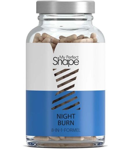 NIGHT BURN: Deine Stoffwechsel-Formel für die NachtNIGHT BURN von My Perfect Shape ist deine Nachtbegleitung für Schlaf, Stoffwechsel und Gewichtsmanagement.Die einzigartige, klug kombinierte 8-in-1-Formel enthält neben wertvollen Pflanzenextrakten aus Garcinia Cambogia, Afrikanischer Mango und Zitronenmelisse das Schlafhormon Melatonin. Dieses kann helfen, die Einschlafzeit zu verkürzen, sodass du gut in die wohlverdiente Nachtruhe finden kannst, die so wichtig für ein gesundes Körpergewicht ist.Das ebenfalls im Produkt enthaltene Cholin unterstützt den Fettstoffwechsel, während Vitamin B6 gut für den Energiestoffwechsel und die hormonelle Balance ist.Ein Highlight in NIGHT BURN ist die Aminosäuren-Verbindung L-Carnitin, die bezüglich einer gesteigerten Fettverbrennung gut erforscht ist. Damit bist du bestens gerüstet, um deinen Abnehmwunsch auch im Schlaf zu unterstützen. ...
