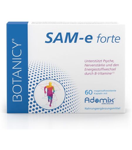 Der natürliche Allround-Fitmacher für Psyche, Nerven, Energie, Schlaf, Herz & Co.SAM-e forte enthält als einziges Produkt seiner Art den natürlichen Markenrohstoff ADOMIX® plus Extrakte aus Rhodiola Rosea, Melisse und Hopfen sowie B-Vitamine.Kaum ein anderes Produkt bietet ein so breites Spektrum an Möglichkeiten wie SAM-e forte.Die Inhaltsstoffe unterstützen die psychische Gesundheit, die physische Vitalität, das Nervensystem, die positive Stimmungslage, den Schlaf und bei emotionalem Stress.SAM-e überzeugt seit Jahren durch positive Ergebnisse in weltweiten wissenschaftlichen Studien. ...