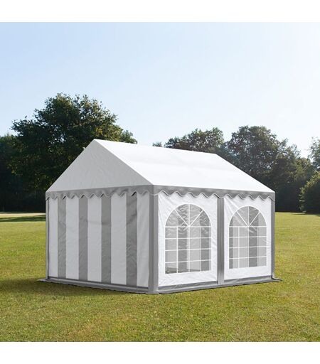 TOOLPORT 3x4m Partyzelt, PVC-Plane, grau-weiß, mit Bodenrahmen - (7248)