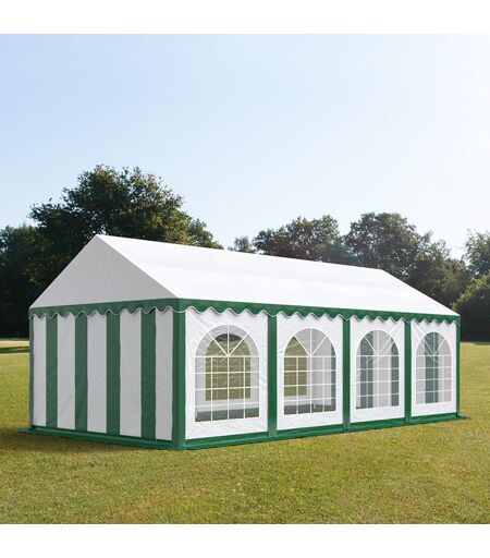 TOOLPORT 4x8m Partyzelt, PVC-Plane, grün-weiß, mit Bodenrahmen - (7207)