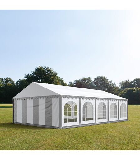 TOOLPORT 5x10m Partyzelt, PVC-Plane, grau-weiß, mit Bodenrahmen - (7172)
