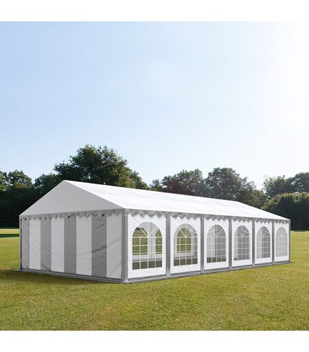 TOOLPORT 6x12m Partyzelt, PVC-Plane, grau-weiß, mit Bodenrahmen - (7302)