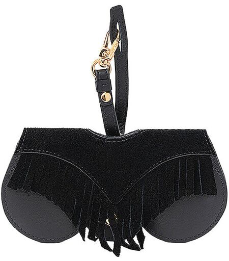 Design-patentierte Form Mit Druckknopf verschließbar Leather Hanger auf der Rückseite zur Befestigung an Tasche oder Gürtel Metallelemente sind mit 24 Karat Gold plattiert Farbbezeichnung: Black Fringes Maße: Ca. B: 13,5 x H: 6,5 cm ...