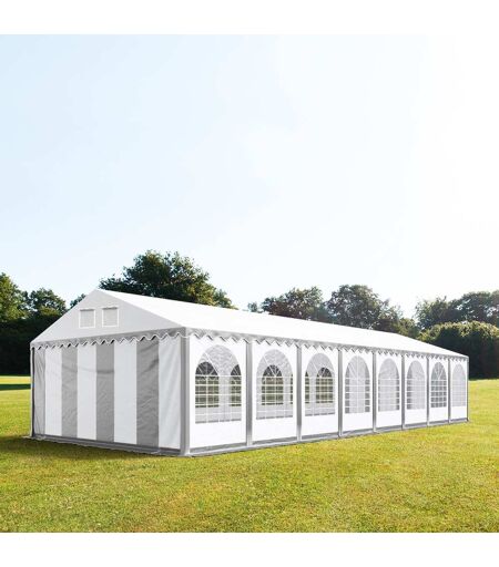 TOOLPORT 6x18m Partyzelt, PVC-Plane, grau-weiß, mit Bodenrahmen - (37735)