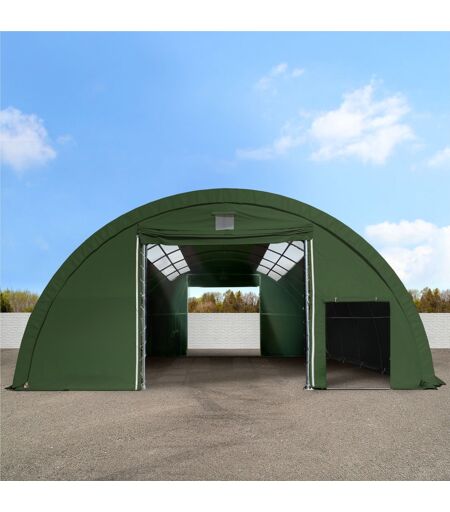 TOOLPORT 9,15x20m Rundbogenhalle, PRIMEtex-Plane, dunkelgrün, mit Statik - (49756)