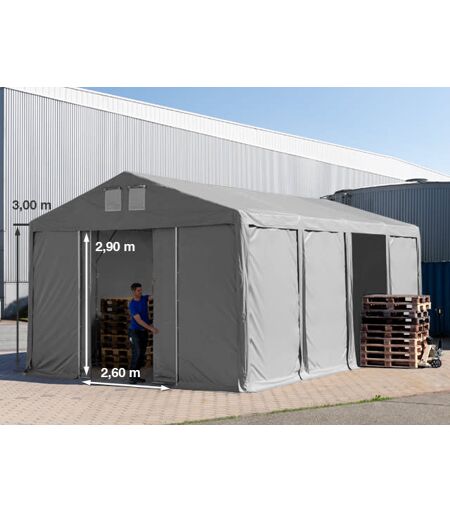 TOOLPORT 6x8 m Lagerzelt, PVC-Plane, grau, mit Bodenrahmen, ohne Statik - (79815)