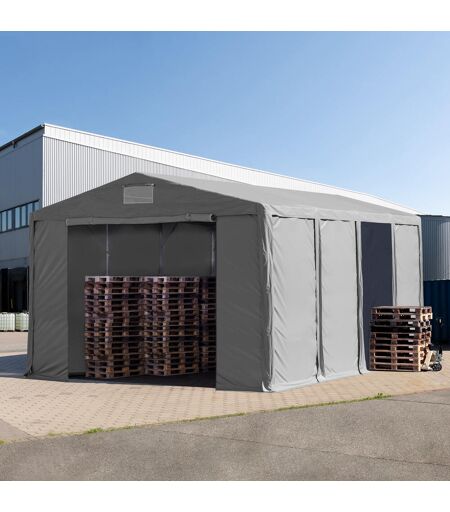 TOOLPORT 8x8 m Lagerzelt, PVC-Plane, grau, mit Bodenrahmen, ohne Statik - (79851)