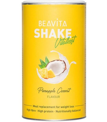 Nahrungsergänzungsmittel sind kein Ersatz für eine abwechslungsreiche und ausgewogene Ernährung und eine gesunde Lebensweise. BEAVITA Vitalkost Kokos-Ananas Fruchtiger Geschmack Wertvolle Nährstoffe Ersetzt eine MahlzeitWas sind die Vorteile vom BEAVITA Mahlzeitenersatz? Der BEAVITA Shake hilft dabei den Wohlfühlkörper zu finden. Ein Shake mit 205 kcal ersetzt eine komplette Mahlzeit und versorgt den Körper dabei mit wichtigen Vitaminen und Mineralstoffen. Mehr als 24 g pflanzliches Protein pro Portion unterstützen den Erhalt der Muskulatur. Werden zwei Mahlzeiten am Tag durch einen BEAVITA Shake ersetzt, hilft der Shake im Rahmen einer kalorienarmen Ernährung bei der Gewichtsreduktion. Soll das Gewicht gehalten werden, kann eine Mahlzeit am Tag durch einen Shake ersetzt werden. So wird im Rahmen einer kalorienarmen Ernährung die Erhaltung des Gewichts vereinfacht. Alle weiteren Mahlzeiten sollten kalorienarm und ausgewogen zubereitet werden. Parallel ist eine Flüssigkeitszufuhr von 2-3 Liter Wasser (oder andere Getränke ohne Kalorien) ein Muss.Es gibt die Auswahl an abwechslungsreichen Geschmackssorten wie Schoko, Vanilla Chai oder Mango Lassi. Wie wird der BEAVITA Vitalkost Shake zubereitet?Der Shake lässt sich einfach und schnell zubereiten und überzeugt durch seine Cremigkeit und angenehme Süße. Für einen Shake einfach 4 gehäufte EL (57 g) in 300 ml Wasser einrühren. Außerhalb der Diät kann der BEAVITA-Mahlzeitenersatz nach Belieben verfeinert werden. Frisches Obst oder knackige Nüsse beispielsweise bringen Abwechslung in den Diät-Shake. So lässt sich dieser Mahlzeitenersatz auch problemlos in den Alltag integrieren. Die schnelle Zubereitung ermöglicht es auch unterwegs oder im Büro auf einen ausgewogenen Shake zurückzugreifen.Zutaten:Sojaeiweiss-Isolat (49,0 %), Polydextrose, Maltodextrin, Honig (9,0 %), Sojaöl, Maisstärke, Kaliumcitrat, Milcheiweiss, Aroma, Calciumsalze der Orthophosphorsäure, Johannisbrotkeimlingsprotein, Flohsamenschalen, Magnesiumhydroxid, Emulgator: Sojalecithin, Süssungsmittel: Sucralose, L-Ascorbinsäure, Eisensulfat, Zinkoxid, Nicotinamid, D-alpha Tocopherylacetat, Calcium-D-pantothenat, Antioxidationsmittel: alpha-Tocopherol, Mangansulfat, Riboflavin, Trennmittel: Siliciumdioxid, Pyridoxinhydrochlorid, Thiaminmononitrat, Retinylacetat, Pteroylmonoglutaminsäure, Kupfergluconat, Natriumselenit, Natriumjodid, Phyllochinon, D-Biotin, Cholecalciferol, CyanocobalaminNährwerte: Durchschnittliche Nährwerte: pro 100 g pro Portion (57 g) NRV pro Portion in % Energie 1519 kJ 360 kcal 866 kJ 205 kcal Fett 6,3 g 3,6 g davon gesättigte Fettsäuren 1,3 g 0,8 g Kohlenhydrate 25,1 g 14,3 g davon Zucker 8,9 g 5,1 g Ballaststoffe 13 g 7,4 g Eiweiß 43,8 g 24,9 g Salz 1,9 g 1,1 g Vitamin Vitamin A 485 μg 276μg 35 % Vitamin D3 3,8 μg 2,2 μg 44 % Vitamin E 7 μg 4,0 μg 33 % Vitamin K 41,8 μg 23,8 μg 32 % Vitamin C 53,1 mg 30,3 mg 38 % Thiamin 0,86 mg 0,49... ...