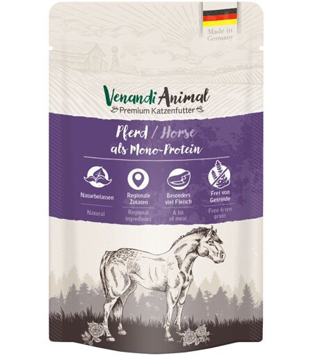24x125g Venandi Animal Monoprotein Pferd Katzenfutter nass