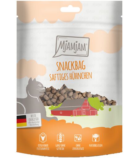 4x 125g MjAMjAM Snackbag saftiges Hühnchen Katzensnacks