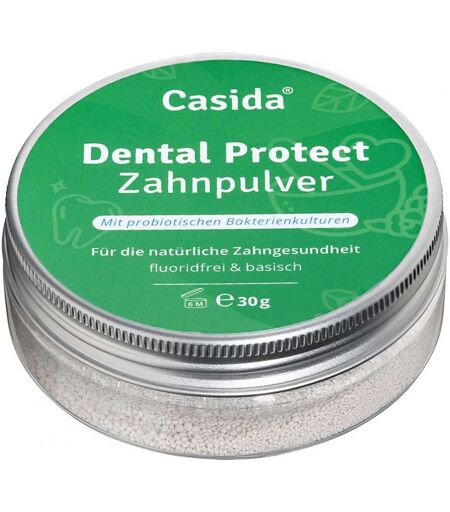 Anwendungsgebiet von Dental Protect Zahnpulver Die natürliche und gesunde Alternative zu herkömmlicher Zahnpasta. Anwendungsgebiete für Dental Protect Zahnpulver: Zahnhygiene, Zahnpflege, Mundhygiene, Mundpflege, Karies, Parodontose, Parodontitis, Plaque, Zahnbelag, Zahnfleischentzündungen" Wirkungsweise von Dental Protect ZahnpulverAls Reinigungsmittel kommen Rügener Heilkreide und Zeolith zum Einsatz. Birkenzucker (Xylit) wird eine positive Wirkung auf die Mund- und Zahngesundheit nachgesagt. Alkalisches Natron als Reinigungsmittel schafft ein gesundes Milieu, das das Wachstum schädlicher Bakterien hemmt. Die probiotischen und schützenden Bakterienstämme Lactobacillus reuteri und Lactobacillus salivarius wirken sich positiv auf die orale Mikroflora aus und sollen eine übermäßige Ansiedlung von Keimen verhindern. Der dezente Minzgeschmack sorgt für ein frisches Gefühl.Wirkstoffe / Inhaltsstoffe / ZutatenDental Protect Zahnpulver enthält: Xylit, Calciumcarbonat, Zeolith Pulver, Natron, Pfefferminzaroma, Lactobacillus reuteri, Lactobacillus salivarius GegenanzeigenBei bekannter Überempfindlichkeit gegen einen der Inhaltsstoffe sollte das Produkt nicht eingenommen werden. DosierungAnwendungsempfehlung von Dental Protect Zahnpulver: Etwas Zahnputzpulver auf die angefeuchtete Zahnbürste geben und wie gewohnt Zähne putzen. SchwangerschaftAuch in Schwangerschaft und Stillzeit anwendbar. HinweiseFür Kinder unzugänglich aufbewahren. Dental Protect Zahnpulver können in Ihrer Versandapotheke www.juvalis.de erworben werden. ...