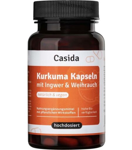 Nahrungsergänzungsmittel sind kein Ersatz für eine ausgewogene und abwechslungsreiche Ernährung und eine gesunde Lebensweise. Casida® Kurkuma + Weihrauch + Ingwer Komplex Pflanzlicher Komplex mit Kurkuma, Ingwer, Weihrauch und schwarzem Pfeffer Enthält Extrakte aus der ayurvedischen Medizin Hochdosiert & optimal kombiniert für eine ausgezeichnete Bioverfügbarkeit Vielfältige Anwendungsmöglichkeiten Frei von Zusatzstoffen, vegan, laktose- und glutenfrei Hergestellt in Deutschland Frei von Zusatzstoffen wie Aromen, Farbstoffen, Stabilisatoren und Konservierungsmitteln. Vegan, laktose und glutenfrei. Apothekenqualität - hergestellt in Deutschland. Zutaten: Weihrauch Extrakt, Kurkuma Extrakt, Ingwer Extrakt, Schwarzer Pfeffer Extrakt, Überzugsmittel: Hydroxypropylmethylcellulose (pflanzliche Kapselhülle) Nährwerte: Zusammensetzung pro 1 Kapsel Weihrauchextrakt 588 mg Curcumaextrakt 421 mg Ingwer 150 mg Verzehrempfehlung: 3x täglich 1 Kapsel unzerkaut mit ausreichend Flüssigkeit einnehmen. Hinweis: Die angegebene empfohlene Tagesmenge darf nicht überschritten werden. Aufbewahrung: Kühl (6-25 °C) und lichtgeschützt lagern. Außerhalb der Reichweite von kleinen Kindern aufbewahren. Nettofüllmenge: 90 KapselnHerstellerdaten: Casida GmbH & Co. KG August-Bebel-Straße 43 08421 Werdau ...